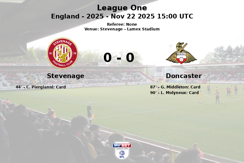 Stevenage, Inglaterra – Stevenage e Doncaster Rovers empataram em 0-0 em uma partida da League One realizada no Lamex Stadium. O jogo, parte da 17ª rodada da temporada de 2025, foi caracterizado por uma batalha no meio-campo e uma falta de oportunidades claras de gol.