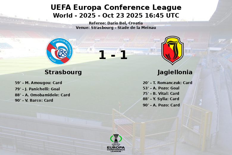 Strasbourg vs Jagiellonia Oct 23 2025 16:45 UTC