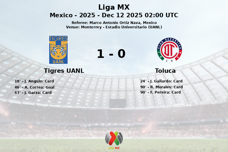 O segundo tempo começou com força para o Tigres UANL. Aos 46 minutos, A. Correa, assistido por D. Lainez, abriu o placar com um gol que desencadeou a euforia no Estádio Universitario (UANL). Apesar das tentativas do Toluca de igualar o jogo, a defesa do Tigres UANL se manteve sólida. J. Garza recebeu um cartão amarelo para o Tigres UANL aos 63 minutos.
