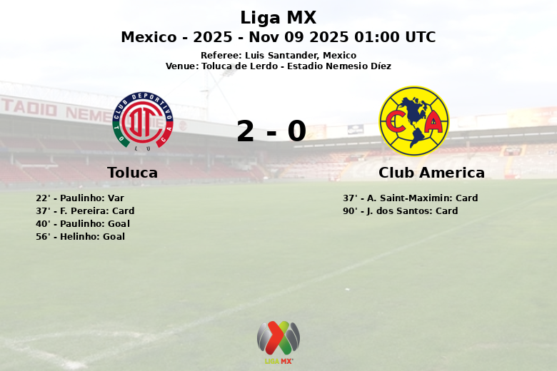 Toluca, México – Em uma partida disputada no Estádio Nemesio Díez, o Toluca venceu o Club América em um jogo correspondente à 17ª rodada do Apertura da Liga MX. Apesar de o Club América ter desfrutado de maior posse de bola (56% contra 44% do Toluca), a equipe da casa soube aproveitar suas chances e concretizar seus ataques.
