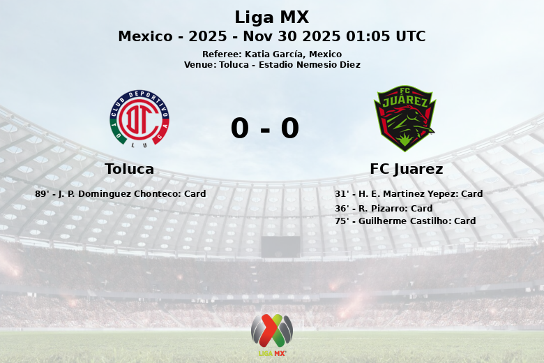 Apesar do domínio territorial do Toluca e seus 7 escanteios, a solidez defensiva do FC Juárez impediu que os mandantes concretizassem suas oportunidades. A partida, correspondente às quartas de final da Liga MX 2025, deixou um gosto agridoce para ambas as equipes, que precisarão buscar a vitória no jogo de volta para avançar para a próxima fase. O árbitro da partida foi Katia García.