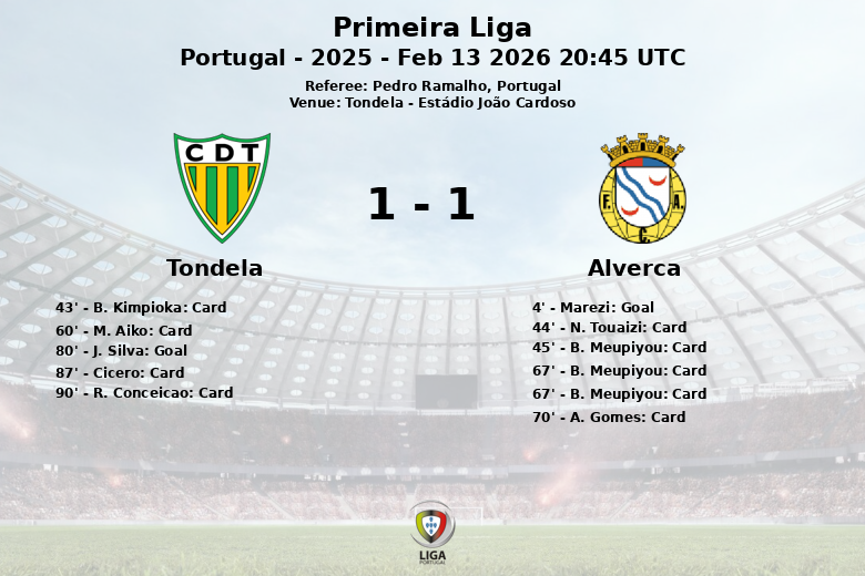 Tondela vs Alverca Feb 13 2026 20:45 UTC