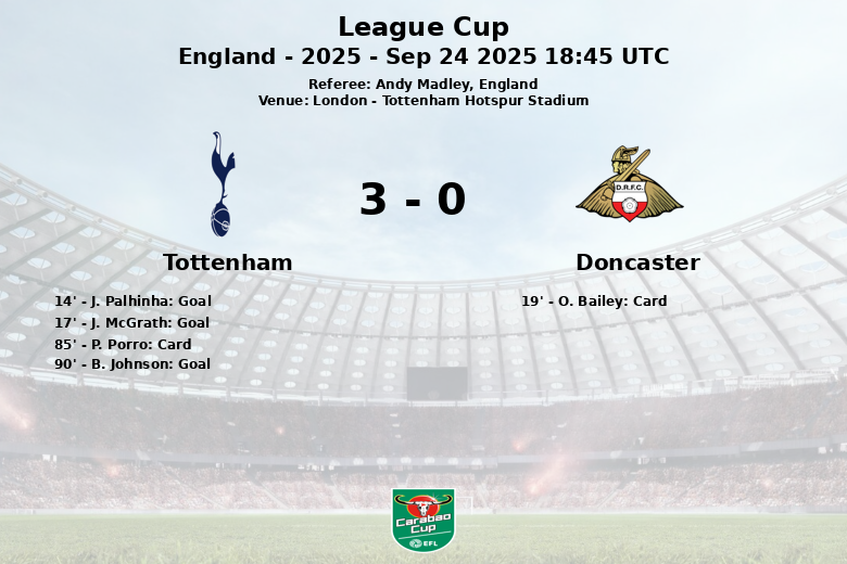 Londres, Inglaterra – Em uma partida realizada no Tottenham Hotspur Stadium, o Tottenham emergiu vitorioso contra o Doncaster na terceira rodada da League Cup. O jogo, disputado em 24 de setembro de 2025, foi marcado pelo domínio do Tottenham na posse de bola, alcançando 55%, em comparação com os 45% do Doncaster.