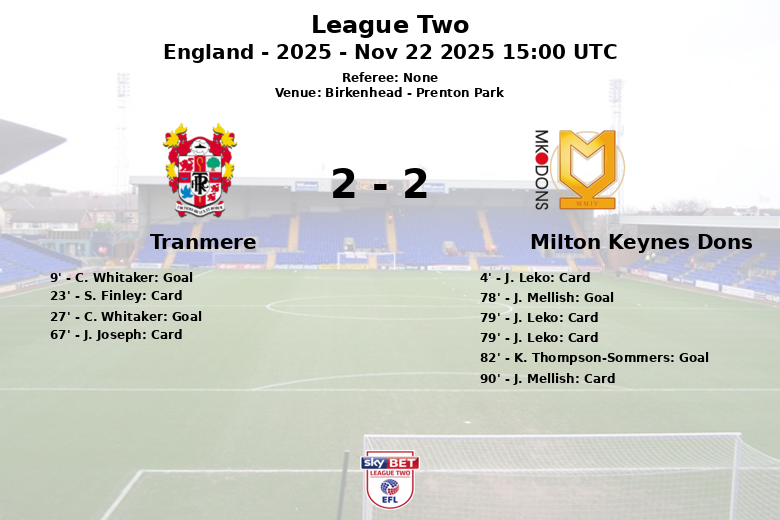 O Tranmere Rovers capitalizou seu domínio inicial e, apesar da pressão final dos Dons, conseguiu manter a vantagem e garantir os três pontos. A partida terminou com um total de 9 chutes para o Tranmere (4 no alvo) e 14 para o Milton Keynes Dons (3 no alvo).