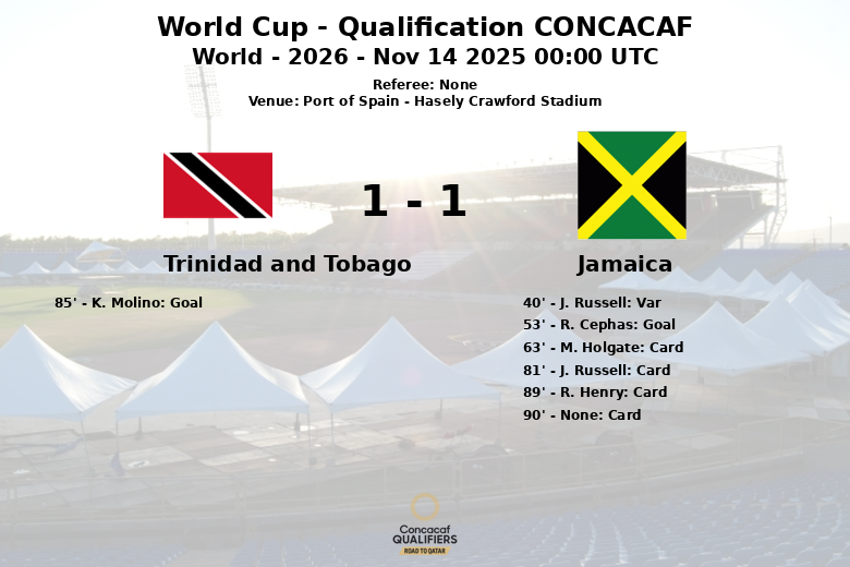 A partida teve momentos de alta tensão. A Jamaica abriu o placar aos 53 minutos com um gol de Cephas, após uma assistência de Burrell, colocando os visitantes na frente. Antes, um gol de Russell havia sido anulado por impedimento aos 40 minutos. Apesar da desvantagem, Trinidad e Tobago não desistiu e buscou insistentemente o empate. A recompensa veio aos 85 minutos, quando Molino marcou o gol de empate, desencadeando euforia nas arquibancadas.