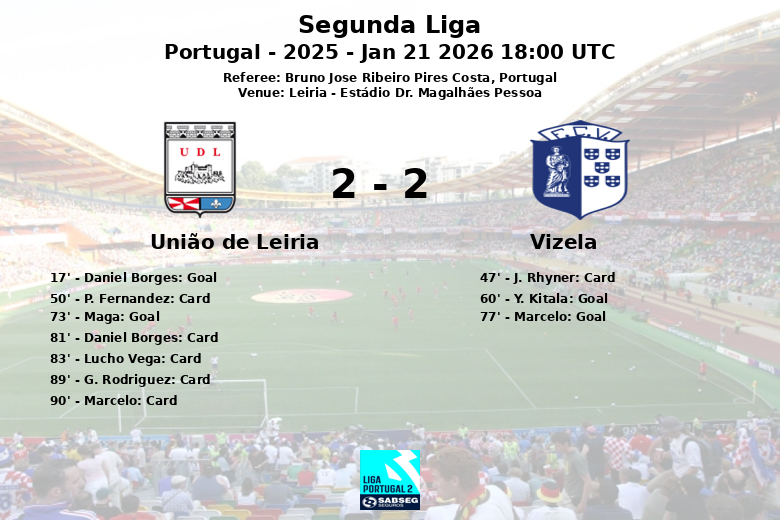 Leiria, Portugal – Num jogo vibrante disputado no Estádio Dr. Magalhães Pessoa, o União de Leiria venceu o Vizela num encontro carregado de emoções e alternativas. O jogo, válido pela jornada 16 da Segunda Liga Portuguesa, temporada 2025, viu o Leiria conquistar a vitória graças a um autogolo nos minutos finais.