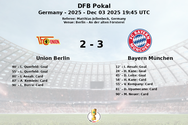 Berlim, Alemanha – Em um jogo disputado no An der alten Försterei, o Bayern München conseguiu avançar na DFB Pokal após um empate cheio de incidentes contra o Union Berlin. A partida, arbitrada por Matthias Jollenbeck, terminou com um placar que refletiu a intensidade e a competitividade demonstradas por ambas as equipes.
