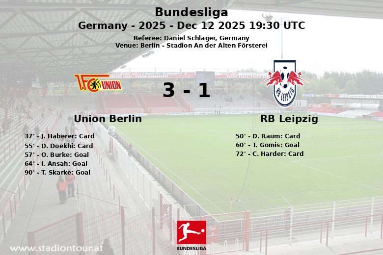 Berlim, Alemanha – Em um encontro vibrante realizado no Stadion An der Alten Försterei, o Union Berlin conseguiu superar o RB Leipzig com um placar final de 3-1. A partida, correspondente à 14ª rodada da Bundesliga, foi caracterizada por sua intensidade e pelos constantes ataques de ambas as equipes.