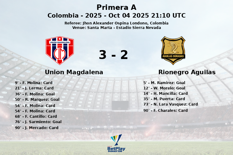 Santa Marta testemunhou um vibrante empate entre Unión Magdalena e Rionegro Águilas, em uma partida carregada de emoções, gols e decisões arbitrais controversas. O encontro, disputado no Estádio Sierra Nevada, terminou com um placar de 3-3, refletindo a intensidade com que ambas as equipes lutaram pela vitória.