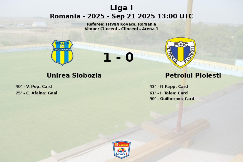 Apesar das tentativas do Petrolul Ploiesti para empatar, a defesa do Unirea Slobozia manteve-se sólida. Guilherme do Petrolul Ploiesti recebeu um cartão amarelo nos minutos finais da partida.