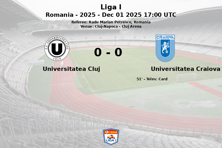 Por sua vez, o Universitatea Cluj, com 40% de posse, teve dificuldades para gerar oportunidades de perigo, registrando apenas 4 chutes, nenhum deles com direção ao gol. A intensidade da partida refletiu-se nas faltas cometidas, 12 pelo Craiova e 7 pelo Cluj. O único incidente disciplinar foi um cartão amarelo mostrado a Teles do Universitatea Craiova no minuto 51. A partida, correspondente à rodada 18 da Liga I romena, deixou ambas as equipes com a sensação de que o Craiova merecia mais, mas o Cluj conseguiu manter o empate.