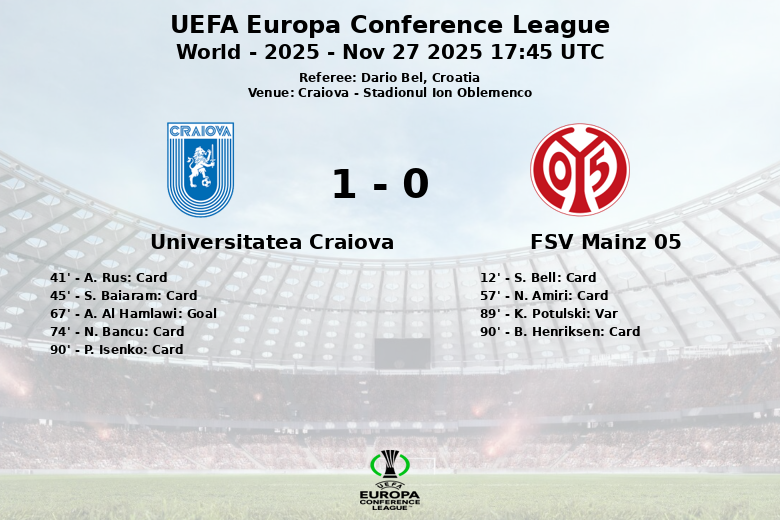 Universitatea Craiova vs FSV Mainz 05 Nov 27 2025 17:45 UTC