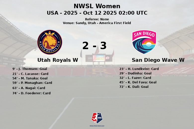 Sandy, Utah – Num encontro vibrante disputado no America First Field, Utah Royals e San Diego Wave empataram num jogo da NWSL Women que manteve os adeptos à beira dos seus assentos. Os Royals assumiram a liderança cedo com um gol de J. Thomsen aos 9 minutos. No entanto, San Diego respondeu com força, empatando o placar aos 29 minutos com um gol de Dudinha. Antes do intervalo, K. Del Fava marcou um gol contra, dando a vantagem a San Diego. Na segunda parte, M. Tanaka empatou para Utah aos 54 minutos. A vantagem não durou muito, pois K. Dali marcou para San Diego aos 72 minutos, definindo o placar final. O jogo foi intenso, com um total de seis cartões amarelos mostrados (quatro para Utah e dois para San Diego). Apesar de ter menos posse de bola (42% contra 58% de San Diego), Utah demonstrou eficácia no ataque, com todos os quatro chutes dirigidos ao gol. San Diego, por sua vez, dominou os escanteios, com 10 contra 4 de Utah.