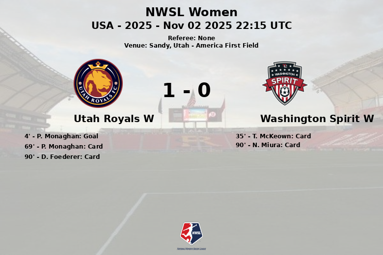 A emoção chegou cedo, quando aos 4 minutos, P. Monaghan, com assistência de L. Prasnikar, abriu o placar para o Utah Royals com um gol que se mostrou decisivo. Apesar de tentar reagir, o Washington Spirit não conseguiu igualar o marcador, sendo freado pela sólida defesa da equipe da casa.