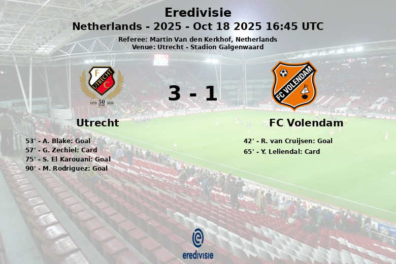 Utrecht, Holanda – Em um jogo emocionante realizado no Stadion Galgenwaard, o Utrecht garantiu uma vitória impressionante sobre o FC Volendam com um placar final de 3 a 1. A partida, válida pela nona rodada da Eredivisie, foi marcada pela intensidade e eficácia da equipe da casa no segundo tempo.