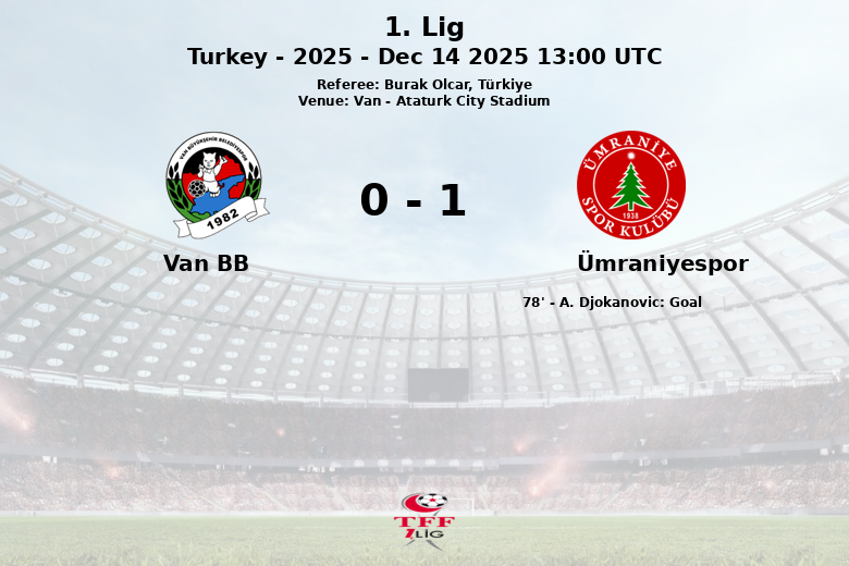 Van, Turquia – Em um jogo disputado no Estádio Ataturk City, o Ümraniyespor garantiu uma valiosa vitória fora de casa contra o Van BB. Apesar de dominar a posse de bola com 64%, o Van BB não conseguiu converter sua superioridade em gols. A equipe da casa criou 13 chutes, dos quais 6 foram ao gol, mas a falta de contundência frente ao gol foi evidente.
