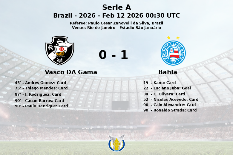 Vasco DA Gama vs Bahia Feb 12 2026 00:30 UTC