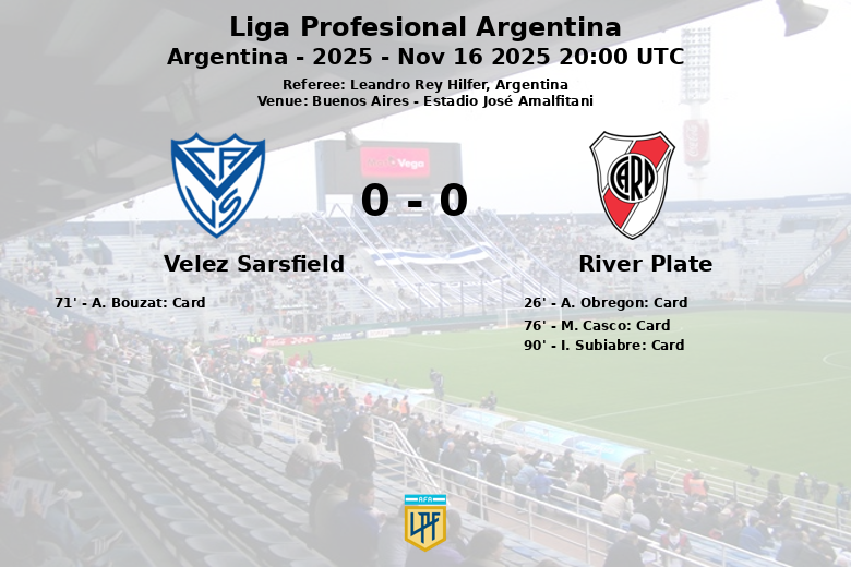 Le match a été émaillé de fautes, River Plate en commettant 16 et Vélez 14. L’arbitre a distribué trois cartons jaunes aux joueurs de River (Obregon, Casco et Subiabre) et un à Bouzat de Vélez. Malgré les tentatives, aucune des deux équipes n’a réussi à briser l’égalité, laissant un goût amer pour les deux dans cette phase importante de la ligue. Vélez a obtenu 6 corners pendant le match, tandis que River Plate seulement 2. Le match a été caractérisé par la lutte au milieu de terrain et la difficulté à créer des occasions nettes de but.