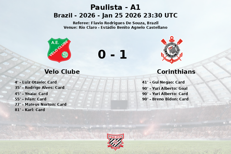 Velo Clube vs Corinthians Jan 25 2026 23:30 UTC