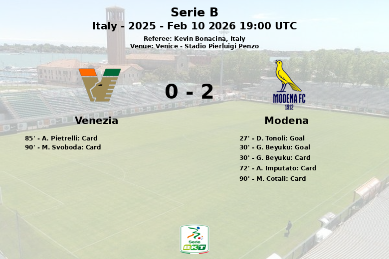Apesar do domínio territorial e dos 17 chutes realizados (5 a gol), o Venezia não conseguiu balançar as redes do Modena. O Modena, com menos posse (35%), mas maior efetividade (7 chutes a gol de 13 totais), levou uma valiosa vitória para casa. A partida terminou com um total de 22 faltas cometidas pelo Venezia e 14 pelo Modena.