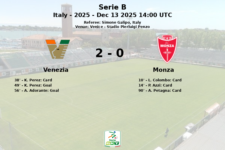 Veneza, Itália – O Venezia garantiu a vitória contra o Monza em uma partida da Serie B realizada no Stadio Pierluigi Penzo. A partida, apitada por Simone Galipo, foi marcada por alta intensidade e várias advertências.
