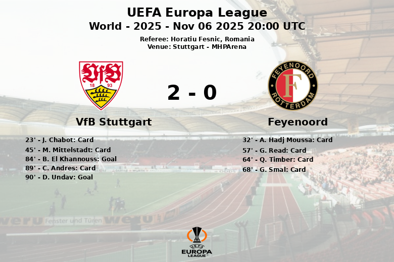 Stuttgart, Alemanha – O VfB Stuttgart triunfou sobre o Feyenoord num jogo disputado na MHPArena, correspondente à fase de grupos da UEFA Europa League. O jogo, arbitrado pelo romeno Horatiu Fesnic, foi marcado por um jogo intenso e um elevado número de faltas, refletido nos oito cartões amarelos mostrados, quatro para cada equipa.