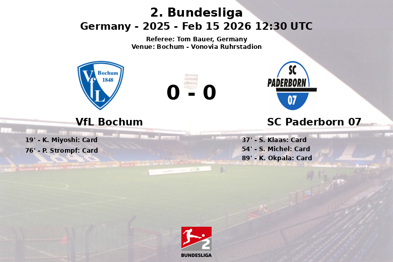 Bochum, Alemanha – O Vonovia Ruhrstadion foi palco de uma partida disputada entre o VfL Bochum e o SC Paderborn 07, correspondente à 22ª rodada da 2. Bundesliga. Apesar da posse de bola ligeiramente maior do Paderborn (53% contra 47% do Bochum), o jogo terminou empatado sem gols, deixando os torcedores com um sentimento agridoce.