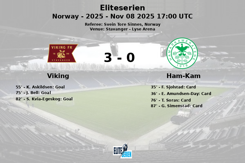 Stavanger, Noruega – Em uma partida realizada no Lyse Arena, o Viking demonstrou sua superioridade sobre o Ham-Kam, garantindo uma vitória convincente. A partida, apitada por Svein Tore Sinnes, foi disputada como parte da Eliteserien, temporada de 2025.