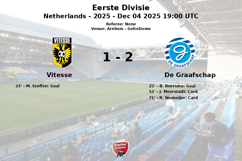 Arnhem, Holanda – Em uma partida disputada no GelreDome, Vitesse e De Graafschap empataram em um jogo correspondente à 4ª rodada da Eerste Divisie. A partida, disputada em 4 de dezembro de 2025, foi caracterizada por um ritmo frenético e oportunidades em ambos os gols.