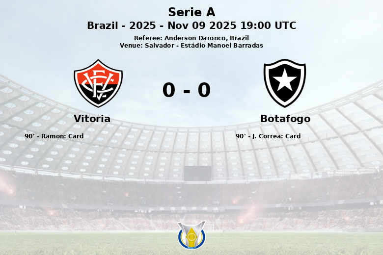 Salvador, 9 de novembro de 2025 – O Estádio Manoel Barradas foi palco de um encontro intenso, porém sem gols, entre Vitória e Botafogo, válido pela 33ª rodada da Série A brasileira. A partida, apitada por Anderson Daronco, foi marcada pela luta no meio-campo e pela dificuldade de ambas as equipes em criar oportunidades claras de gol.