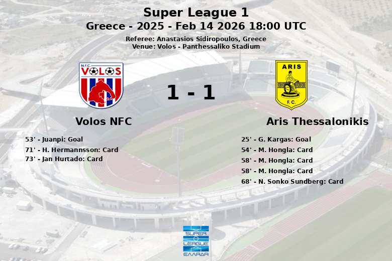 Volos, Grécia – Uma partida disputada no Estádio Panthessaliko entre Volos NFC e Aris Thessalonikis terminou em um empate que deixou um gosto agridoce para ambas as equipes. O jogo, válido pela 21ª rodada da Super League 1, foi cheio de emoções, decisões de arbitragem controversas e momentos-chave que definiram o resultado final.