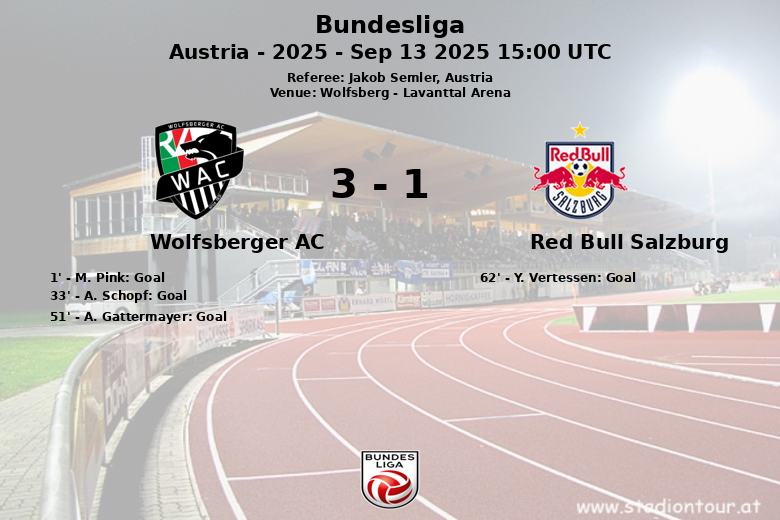 Wolfsberg, Áustria – Em uma partida que desafiou as expectativas, o Wolfsberger AC triunfou sobre o Red Bull Salzburg com um placar de 3 a 1 na Lavanttal Arena. O jogo, correspondente à sexta jornada da Bundesliga austríaca, testemunhou uma atuação inspirada da equipe da casa.