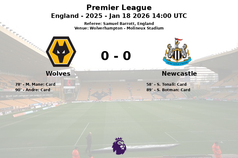 Wolverhampton, Inglaterra – Em uma partida correspondente à 22ª rodada da Premier League 2025, Wolves e Newcastle United empataram em 0-0 no Molineux Stadium. A partida, arbitrada por Samuel Barrott, foi caracterizada por alta intensidade e um meio-campo muito disputado.
