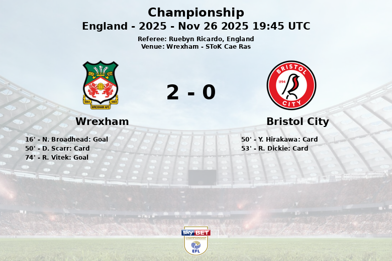 Wrexham, Inglaterra – Em um jogo disputado no SToK Cae Ras, Wrexham e Bristol City empataram em partida válida pela 17ª rodada do Championship. A partida, arbitrada por Ruebyn Ricardo, foi tensa e com alternativas para ambas as equipes.