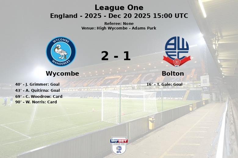 High Wycombe, Inglaterra – Em um encontro disputado no Adams Park, o Wycombe Wanderers triunfou sobre o Bolton em uma partida da League One correspondente à 21ª rodada. Apesar do Bolton dominar a posse de bola com 64%, o Wycombe demonstrou maior eficácia em frente ao gol.