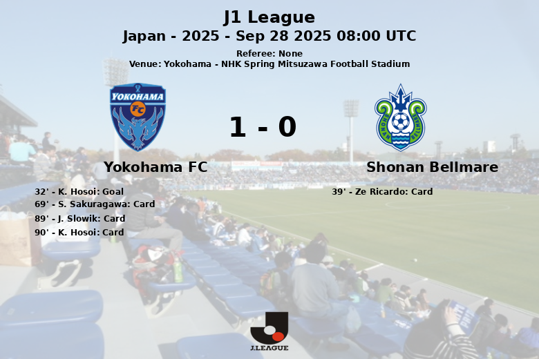 Yokohama, Japão – Em uma partida disputada no NHK Spring Mitsuzawa Football Stadium, o Yokohama FC conquistou uma vitória apertada contra o Shonan Bellmare, válida pela 32ª rodada da J1 League. O único gol do jogo foi marcado aos 32 minutos por K. Hosoi, que aproveitou uma jogada ofensiva da equipe da casa.