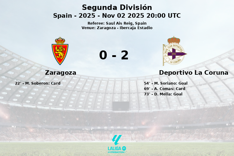 Saragoça, Espanha – O Deportivo La Coruña superou o Saragoça no Ibercaja Estadio em partida válida pela 12ª rodada da Segunda Divisão. Apesar de uma posse de bola ligeiramente favorável ao Deportivo (53% contra 47% do Saragoça), o domínio no placar se tornou evidente no segundo tempo.