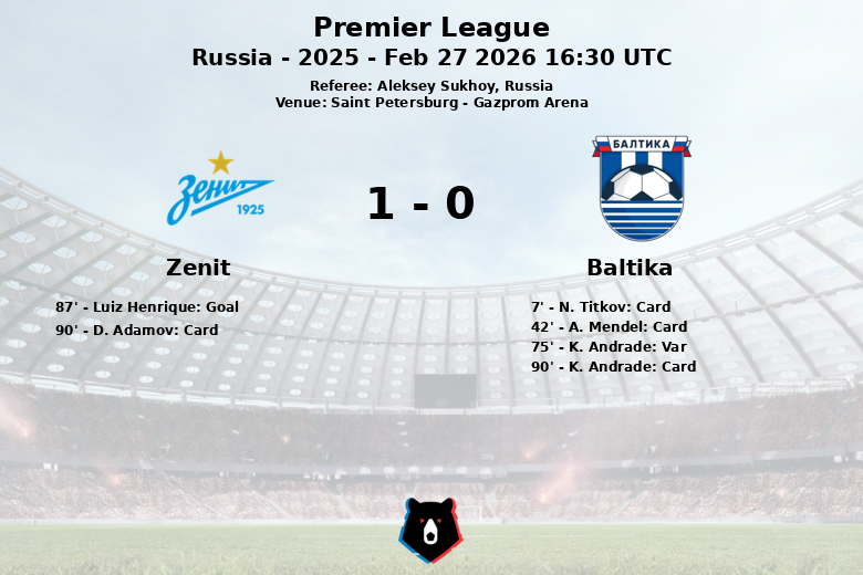O gol decisivo veio aos 87 minutos, marcado por Luiz Henrique, que recebeu assistência de M. Glushenkov. O Zenit somou três pontos importantes em sua busca pelo título, enquanto o Baltika precisará repensar sua estratégia para as próximas partidas.