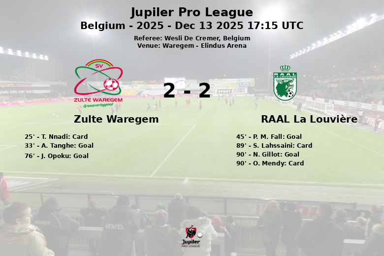 Apesar da maior posse de bola do Zulte Waregem, o RAAL La Louvière demonstrou ser um rival perigoso, aproveitando suas oportunidades e levando um valioso ponto de Waregem.