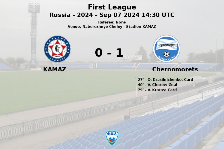 Chernomorets defeated KAMAZ 1-0 in a match played at the Stadion KAMAZ in Naberezhnye Chelny, corresponding to round 9 of the Russian First Division.